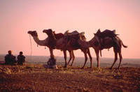 Wir genießen einen großartigen Sonnenaufgang über den Dünen! Unsere Karawane begibt sich nun auf einen Pfad der uns durch Tamarisken- und Akazienhaine führt, über Dünen und vorbei an Quellen und Brunnen. Beim Oued Naam schlagen wir heute unsere Zelte auf.