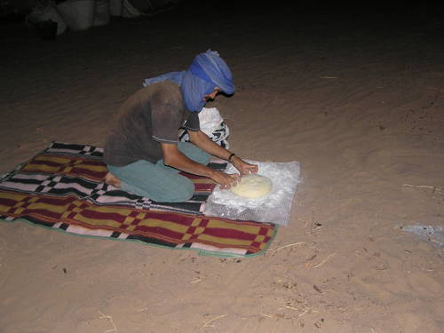 1. Tag: Wir brechen nach dem Frühstück in Richtung Tinfou auf. Unterwegs gibt es eine richtige Berbermahlzeit, frisch zubereitet natürlich, und am Abend schlagen wir das Lager in den Dünen auf.